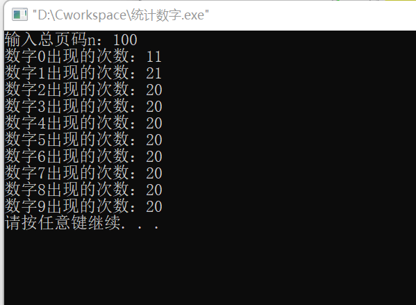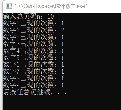printf("出现的次数:%d\n",ndigit[j]);