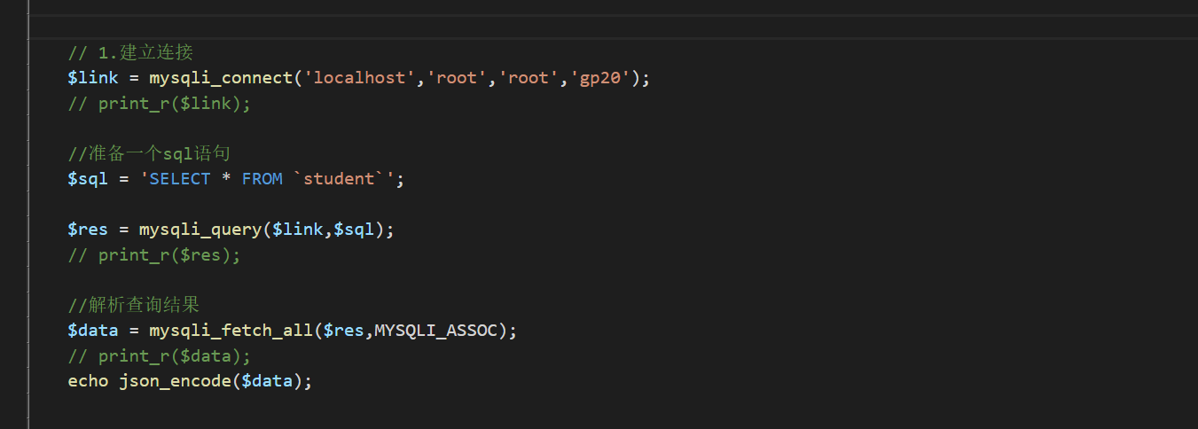 语法:$data = mysqli_fetch_all(要解析的数据,解析的数据格式)