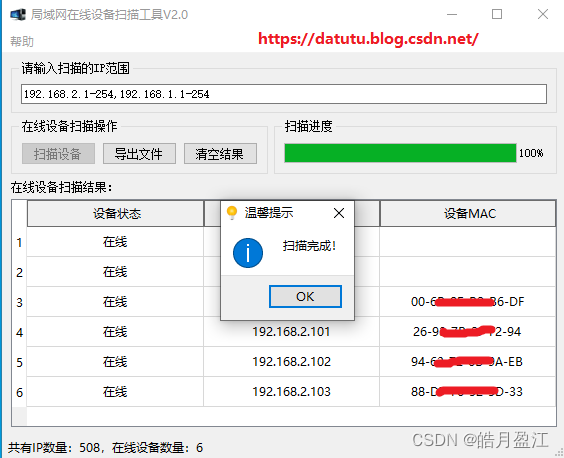 局域网在线设备扫描工具V2.0,采用一机一码,需要的话根据联系方式联系作者获取正版注册秘钥。