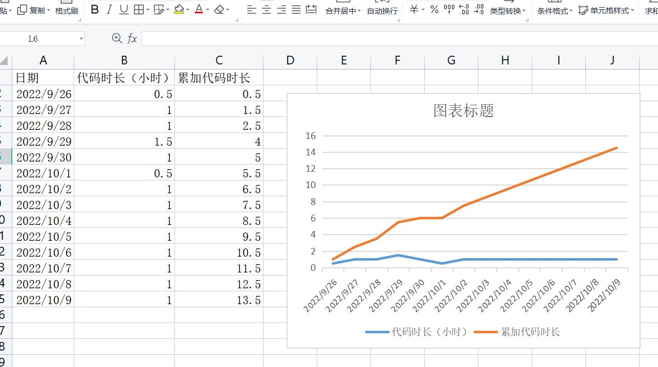 3.2 根据记录2个月的每天代码时长,利用excel绘制统计表