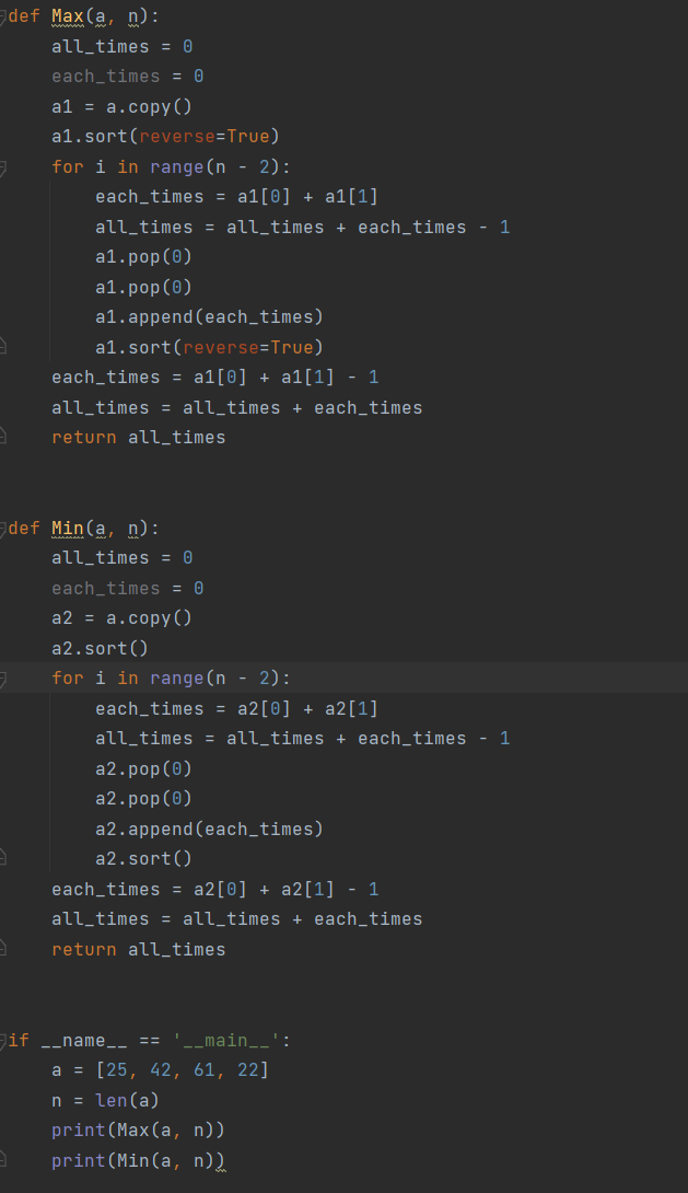 最优合并问题:给定k个排好序的序列,用2路合并算法将这k个序列合并成一个序列。假设采用的2路合并算法合并2个长度分别为m和n的序列需要m+n-1次比较。试设计一个算法确定合并这个序列的最优合并顺序,使所需的总比较次数最少。为了进行比较,还需要确定合并这个序列的最差合并顺序,使所需的总比较次数最多。