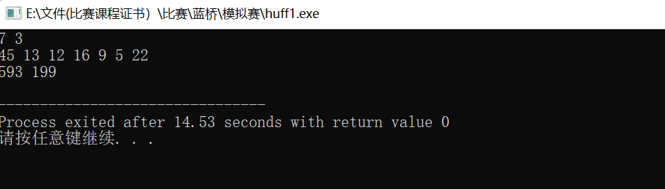 由题目已知得合并长度为m和n需要比较次数为m+n-1,要想得到最优合并顺序,根据贪心算法的思想,局部最优即全局最优,先考虑长度最短的两个数进行合并,合并后的数字加入数组中然后再次挑选长度最短的两个数合并,每次合并都让记录次数的值进行加法就可以,一直到将所有数据合并完为止。