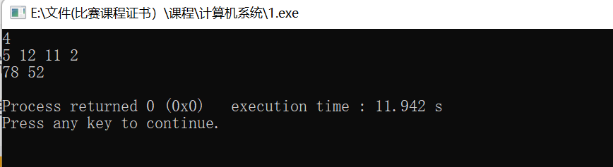 cout<<sum2<<" "<<sum1<<endl;