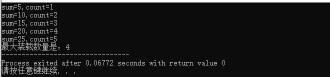 printf("最大装载数量是:%d",n);