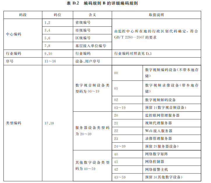 编码规则 B由中心编码(8位)、行业编码(2位)、序号(4位)和类型编码(2位)四个码段构成,即系 统编码 =中心编码 + 行业编码 +序号+类型编码。编码规则 B的详细说明见表 D.2。