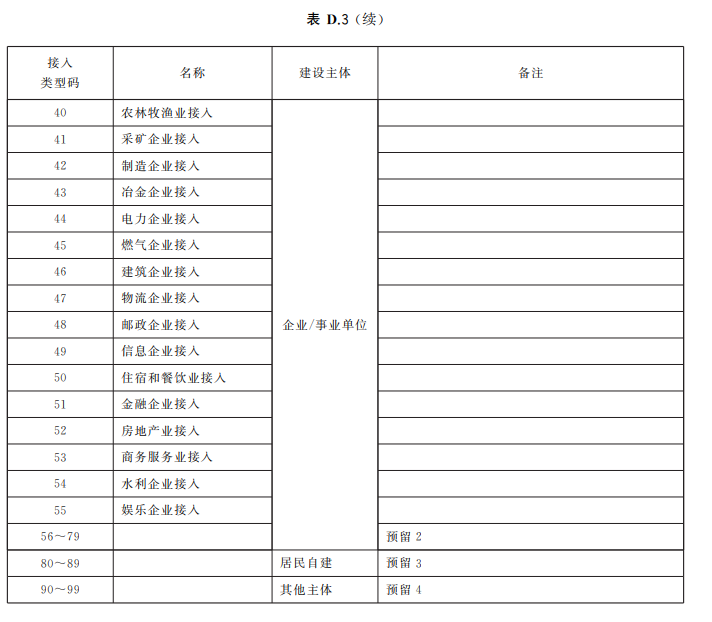 行业编码对照表见表 D.3。