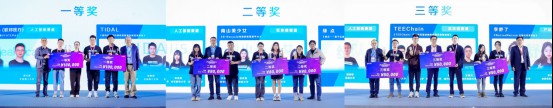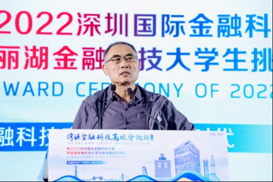 活动中,在“2022 深圳国际金融科技大赛——西丽湖金融科技大学生挑战赛”颁奖环节,李清泉、杨强等多位嘉宾为大赛前三甲的8个获奖团队颁发赛事证书、奖牌、奖杯、奖金,以鼓励同学们积极投入金融科技创新事业。