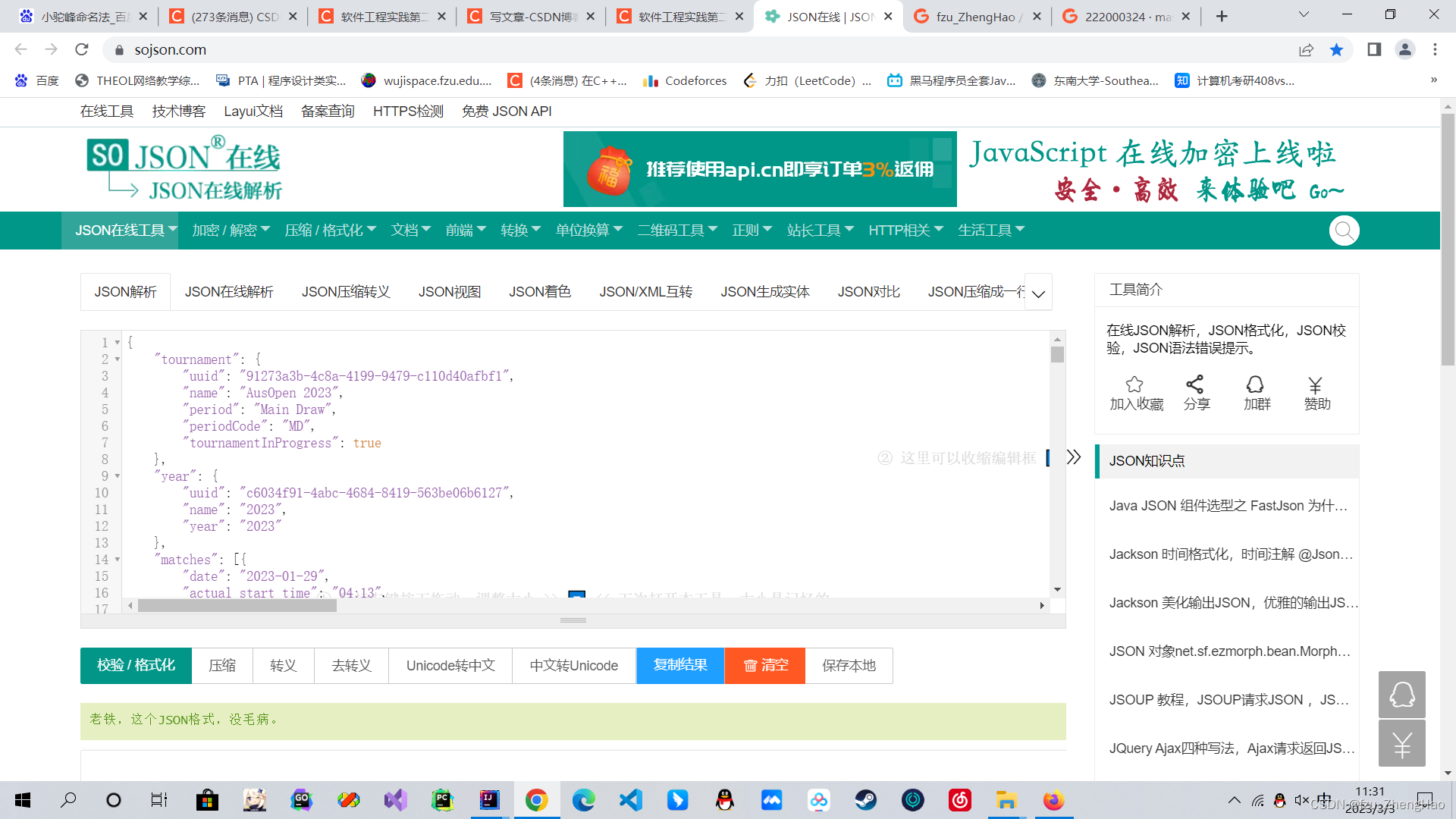 我们把源代码全部复制,使用JSON在线解析网站,可以很方便地把格式不规范的JSON文件转换为格式美观的JSON文件: