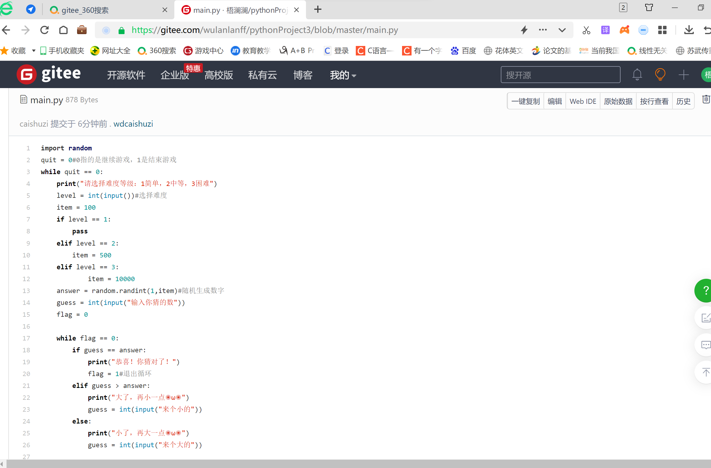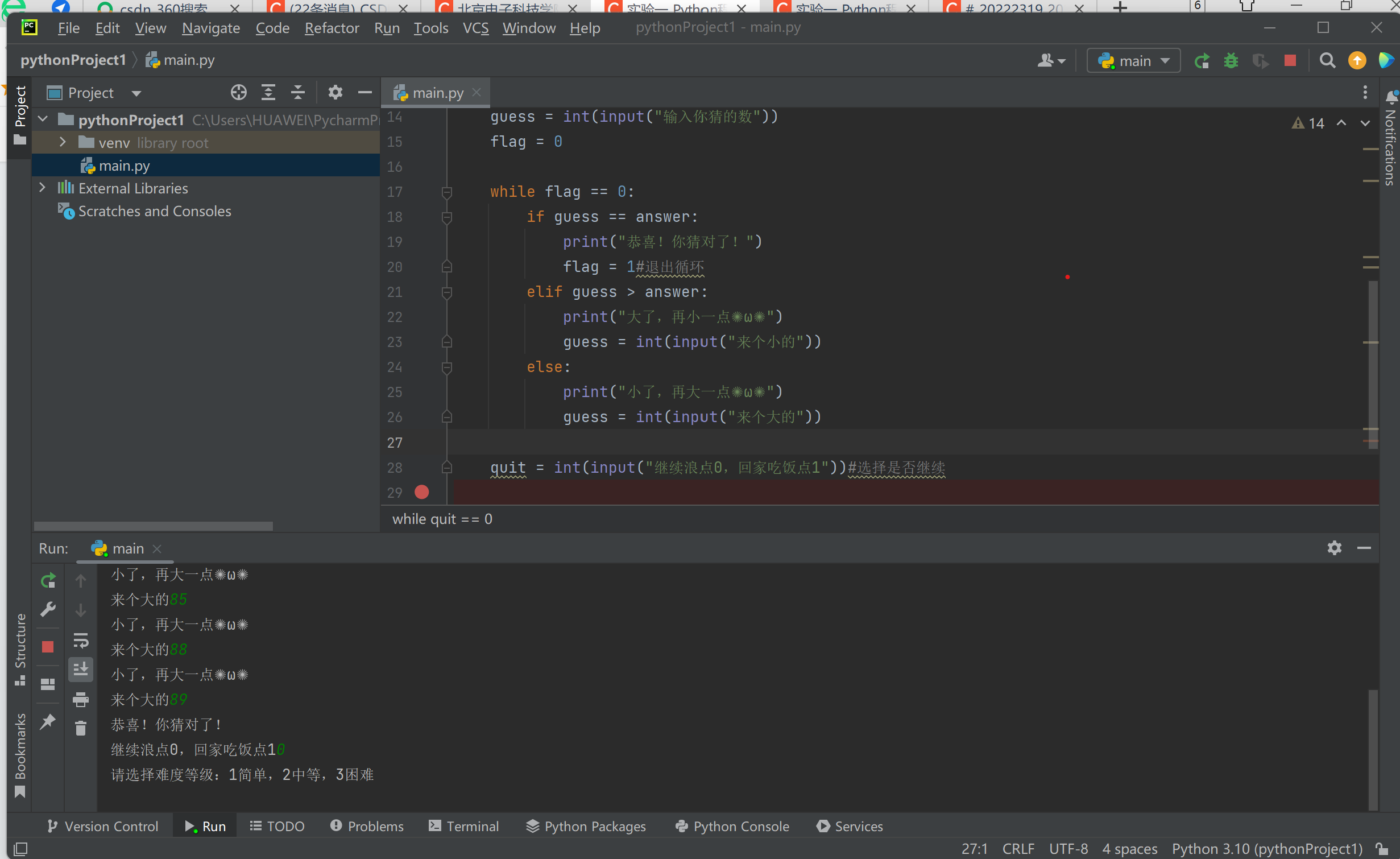 quit = 0#0指的是继续游戏,1是结束游戏