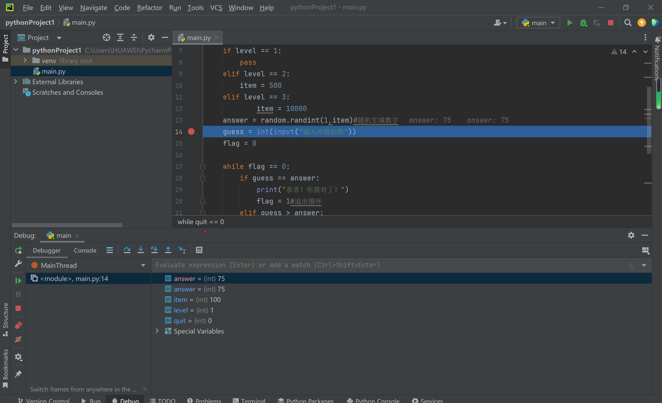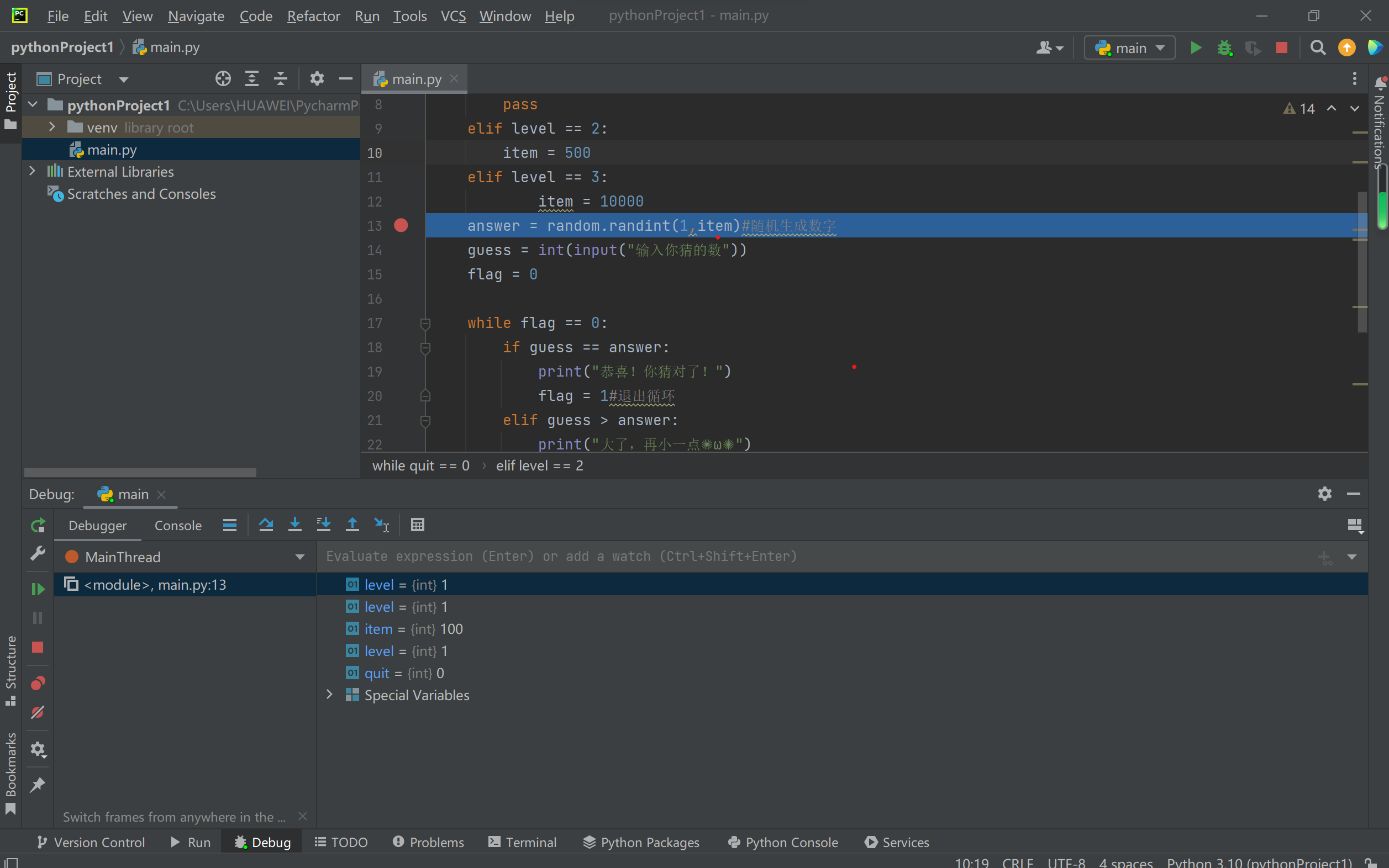 answer = random.randint(1,item)#随机生成数字