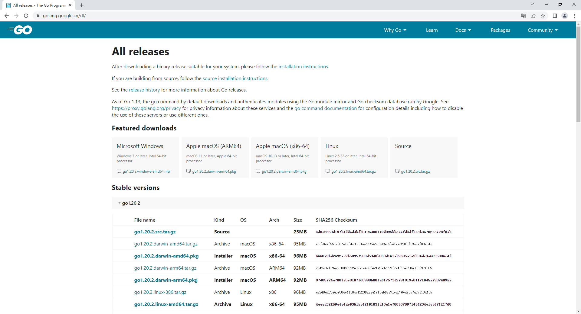 从官网下载go语言安装包