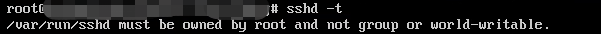 通过以上,可判断该目录权限过大导致了服务安全排斥;修改/var/run/sshd/目录权限为754,重启服务,正常。