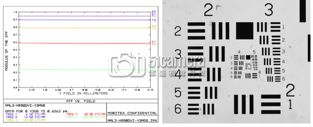 MML3-HR80DVI-43M58镜头最大光圈可开至F11.5,在最大光圈时分辨率达到2.6um,并且在超高分辨率的同时一如既往的保持了极佳的中心与边缘视场一致性。