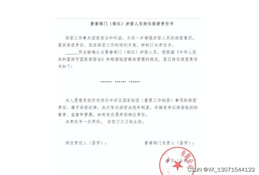 “保密部门岗位”要求填写本单位设定的保密人员、保密要害部门(部位)以及各保密岗位的职责等相关情况说明。还需上传涉密岗位人员签订的“保密责任书”文字版。