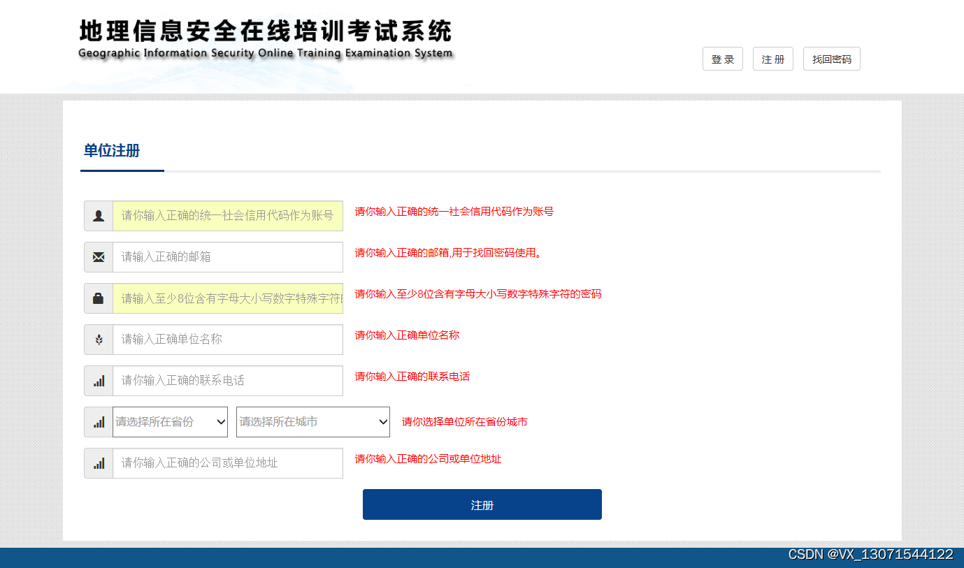 注册考试系统网址在百度搜索“地理信息安全保密培训”即可找到