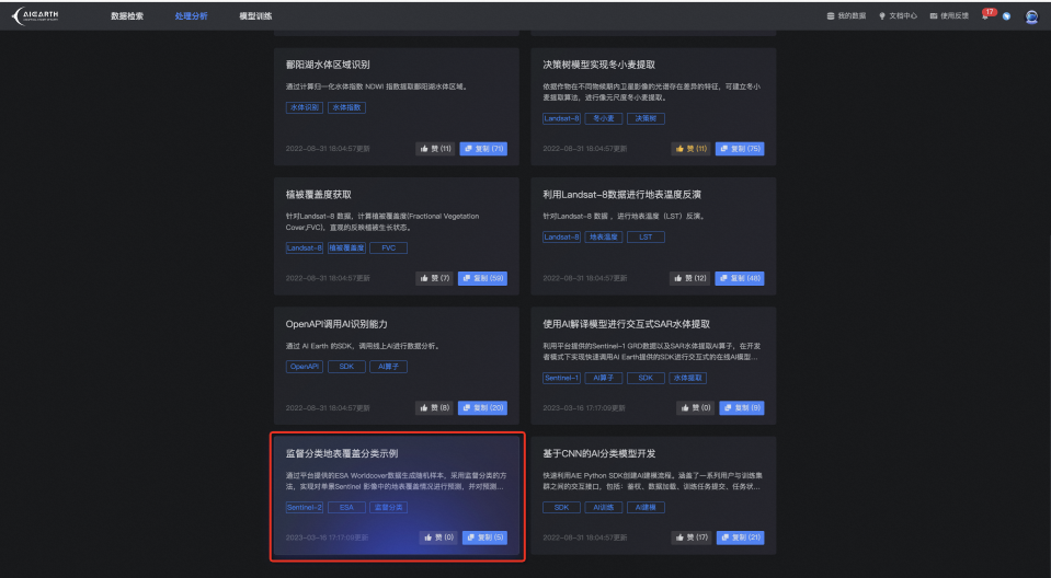 AI Earth在用户访谈中收到了多位用户反馈,希望平台能提供机器学习相关算子能力。我们快速规划和研发,近期上线了20多类与机器学习相关的函数算子,包括常用的分类器,如随机森林、支持向量机、贝叶斯等,同时上线对分类模型精度进行评价的混淆矩阵。