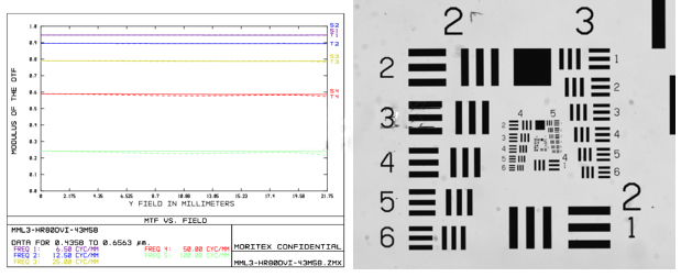 MML3-HR80DVI-43M58镜头最大光圈可开至F11.5,在最大光圈时分辨率达到2.6um,并且在超高分辨率的同时一如既往的保持了极佳的中心与边缘视场一致性。