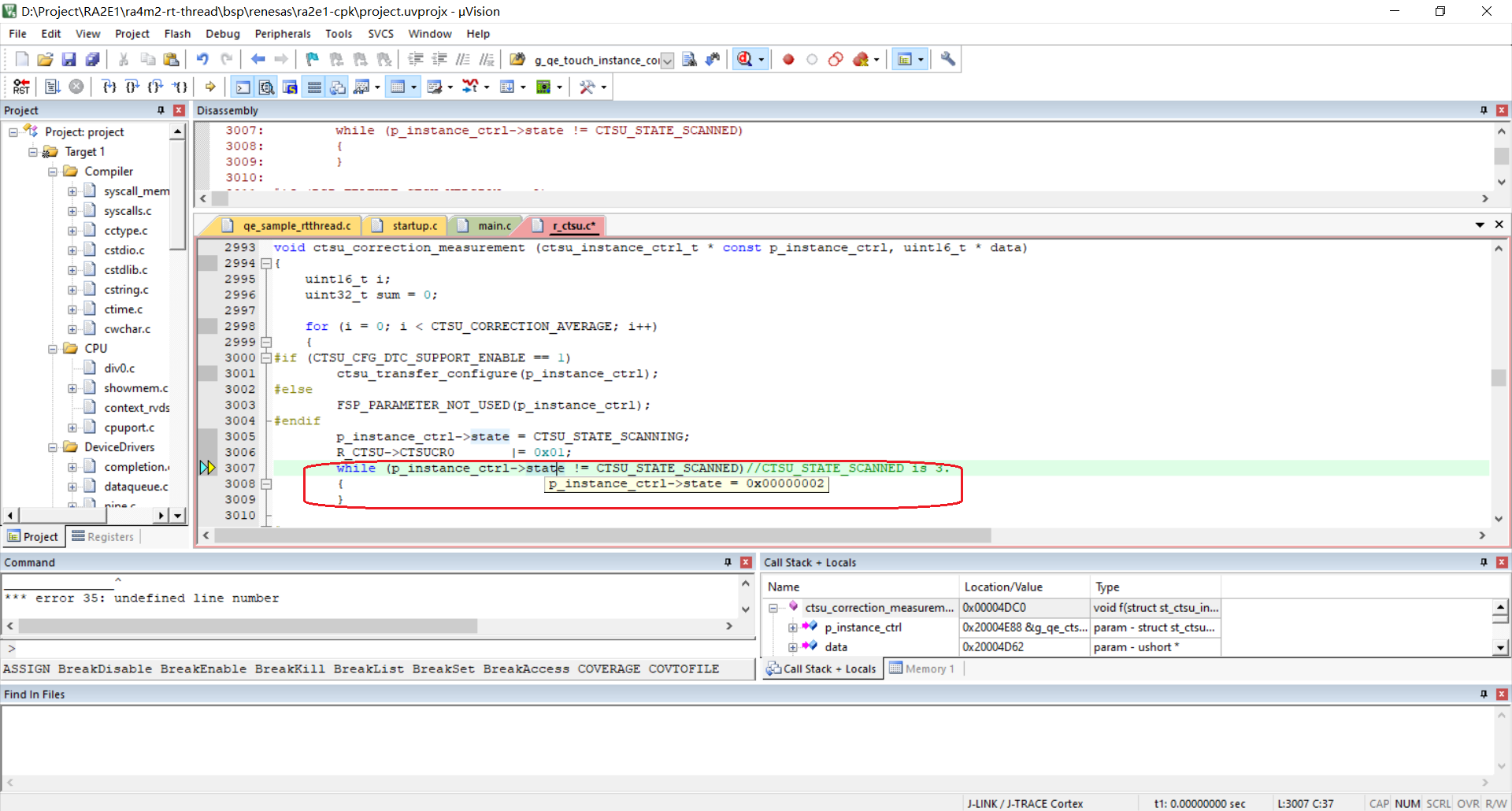 while (p_instance_ctrl->state != CTSU_STATE_SCANNED)//CTSU_STATE_SCANNED is 3.