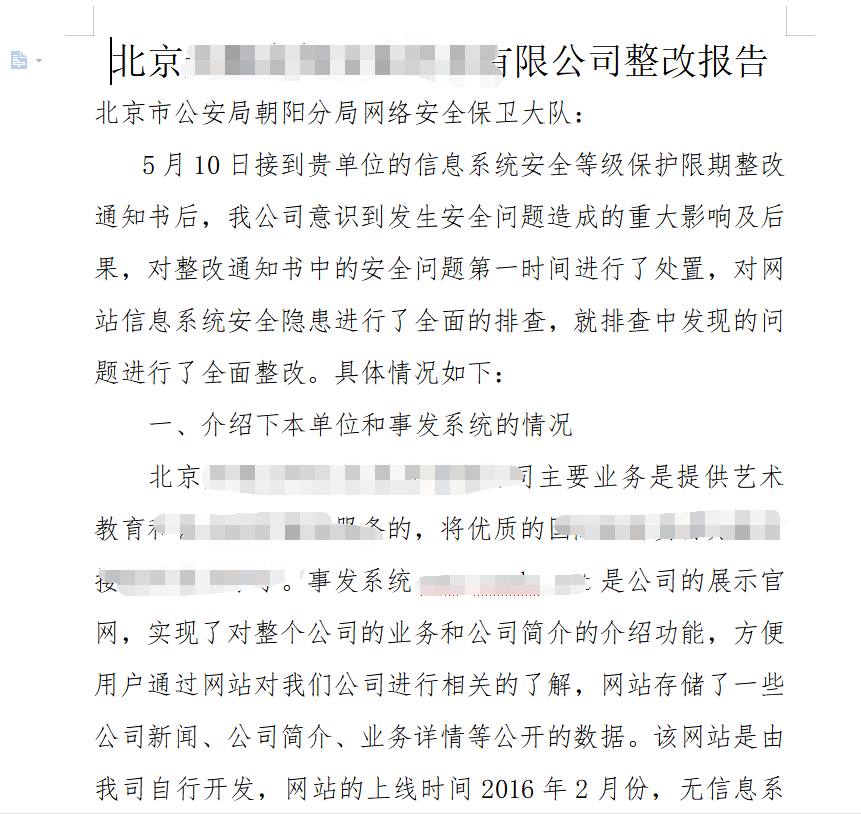 接下来我们到了反馈给网警那面的一个步骤,我们SINESAFE帮客户将漏洞进行修复后,就要开始攥写整改报告,具体写的内容就是如何核实漏洞是否属实的,针对漏洞的成因分析要写详细的过程,比如出现SQL注入漏洞,就是要把人工审计代码这个过程写进去,是如何审计到该代码存在sql注入漏洞的,比如是get post前端变量未作拦截,可输入任意字符等等的这种详细过程。再一个要写具体时间,节点,做了哪些漏洞修复和升级以及加固工作,什么时间完成的都要写清楚,其他系统和网站的安全风险排查是如何进行的,检测中是否发现其他漏洞,如何检测和复现都要写明白。其实这种限期整改报告就得需要专业的网络安全的工程师来写,有些建站公司根本就不懂这一块,随便找个人乱写一通,提交给网警那面,殊不知网警会对漏洞再次的复测,检查你们是否有修复漏洞,如果没有修复掉就惨了,就会直接对你们公司进行行政处罚,罚款5000-15000左右,具体以整改的实际情况来判定,所以遇到这种事情得找专业的人去解决,像我们SINE安全处理了很多遇到限期整改通知书的客户,我们都是踩着经验过来的,可以快速的解决问题,避免客户的公司被公安进行行政处罚,省心又省力。网络安全可不能小看了,大部分公司觉得我们只是一个小网站,没有什么流量,出现网络安全漏洞又怎样,抱着这种态度很容易翻车,吃了亏才知道问题的严重性。