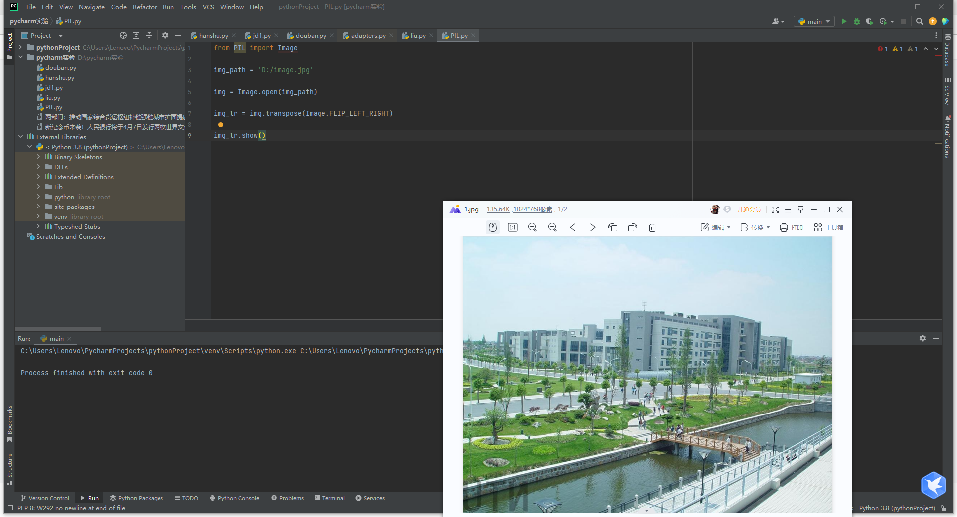 任务 1)从以下网站:南通大学[学校掠影](https://www.ntu.edu.cn/77/list.htm)任选一副图片下载,用Python程序显示原始图片。