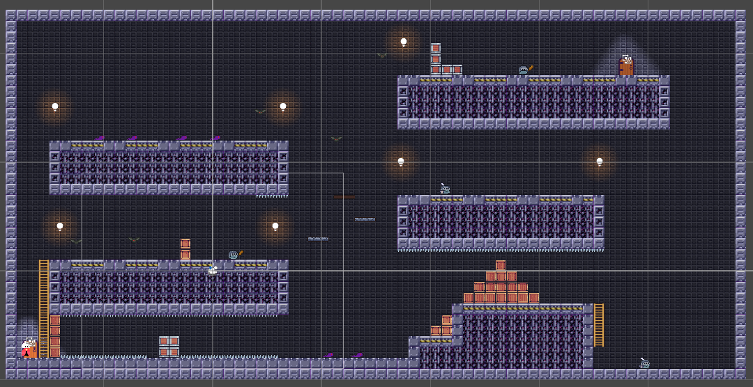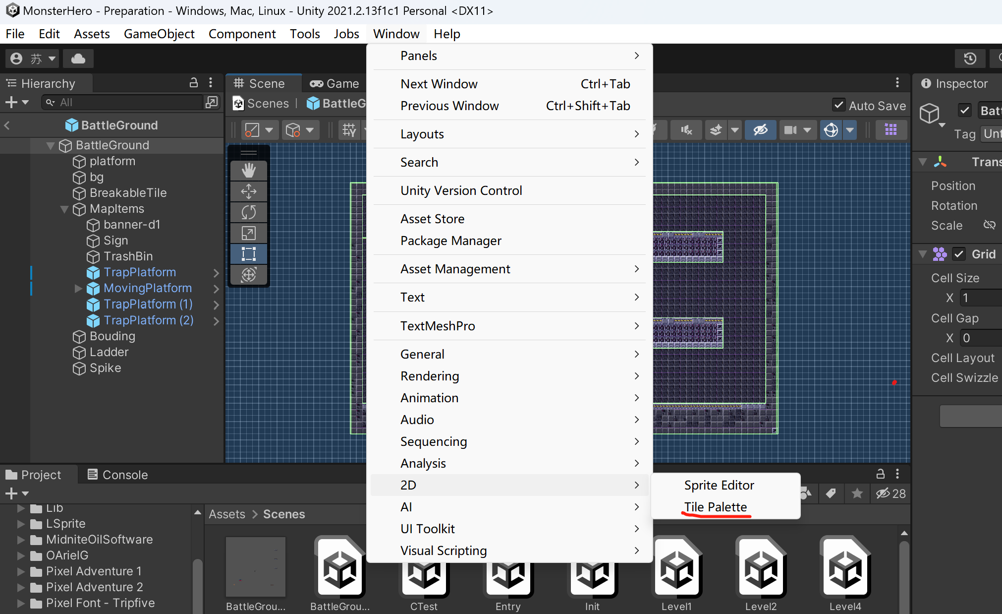 在右边选取对应的tile,便可以在左边的场景中绘制出需要的平台的外形。