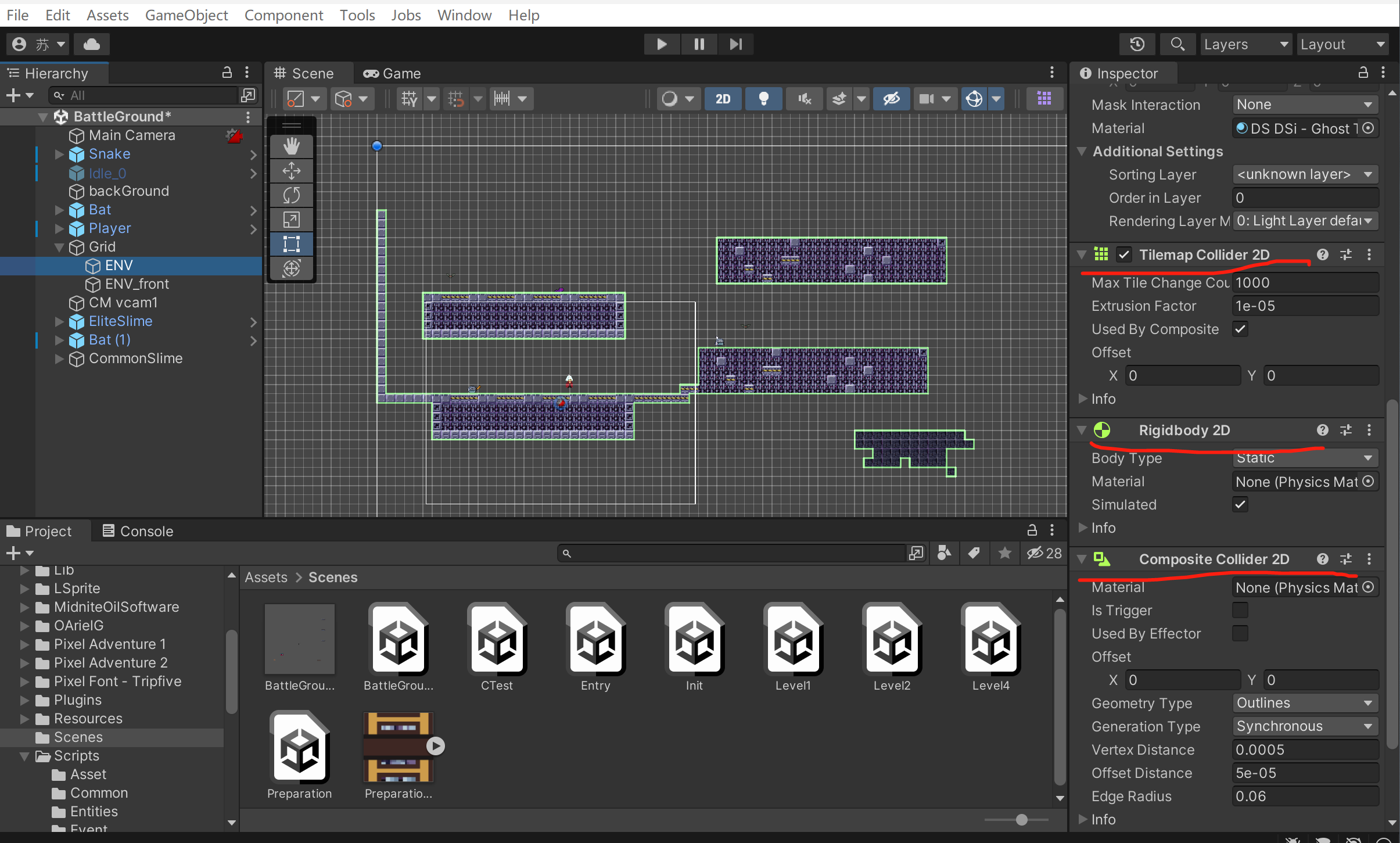 在一个复杂的场景中,可能会有平台,装饰的前景,背景,与玩家交互的怪物等等,当场景复杂起来之后,为了方便后续的工作,分层就成了必须的步骤,在之前的开发过程中,就曾出现玩家挂载的脚本无法检测到地面以至于无法起跳的情况,下面给出解决方法。