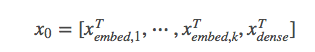 拼接起来的向量X0将作为我们Cross Network和Deep Network的输入