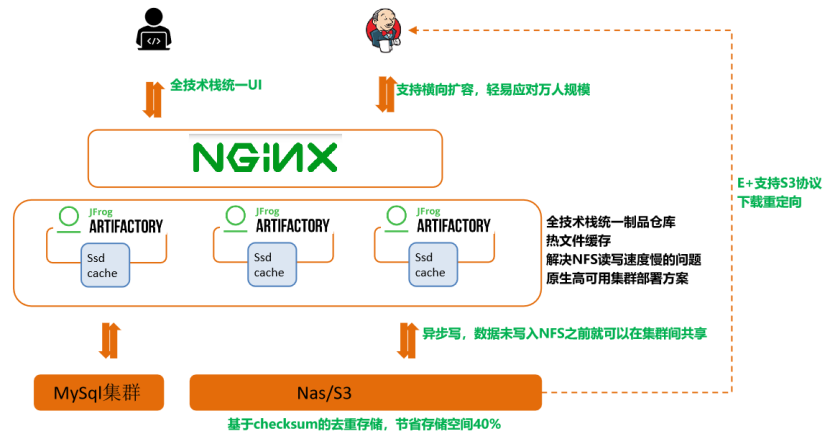 企业制品单一可信源建设对研发效能的提升具有重要意义。单一可信源是企业内部单一的、合规地存放所有软件的仓库,包括war包,Docker镜像,zip包等,以及第三方开源组件或者商业软件的授权版本和软件物料清单(SBOM)。以支持高可用高并发的单一可信仓库NGINX为例,企业制品单一可信源能够为企业带来巨大收益,包括运维成本降低、可用性提升、性能增强以及异地可同步等。