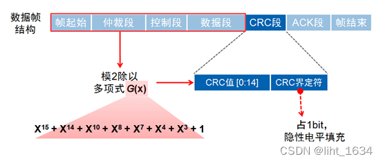 B.CRC校验范围:起始位+仲裁段+控制段+数据段