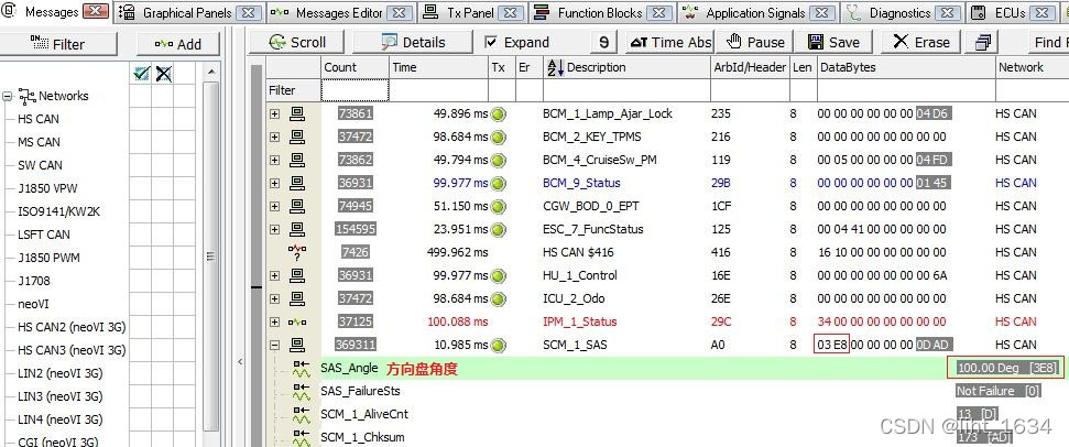 总结:Vehicle Spy软件解析AutoSAR应用层报文,其中ArbId/Header为报文ID,DataBytes为数据。