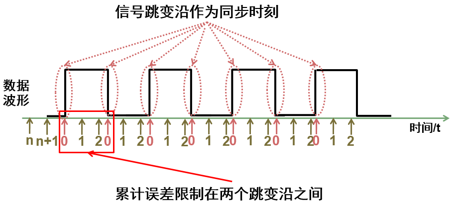 从节点不需晶振就能实现自同步,节省了从设备的硬件成本;