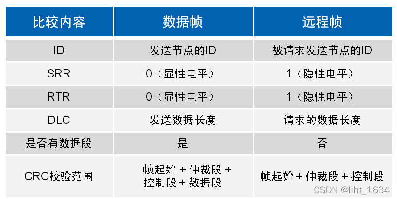 相似的报文大小,相似的仲裁/优先权设置,CAN 具有更高的速率,CAN 具有更好的仲裁定义,CAN 是更开放的标准,CRC 校验。