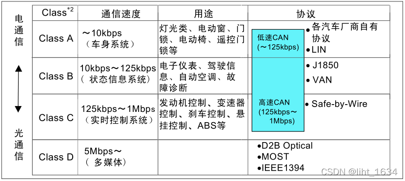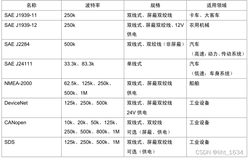 CAN : 高速双线CAN、单线CAN、低速容错CAN J1939、GMLAN高层协议;