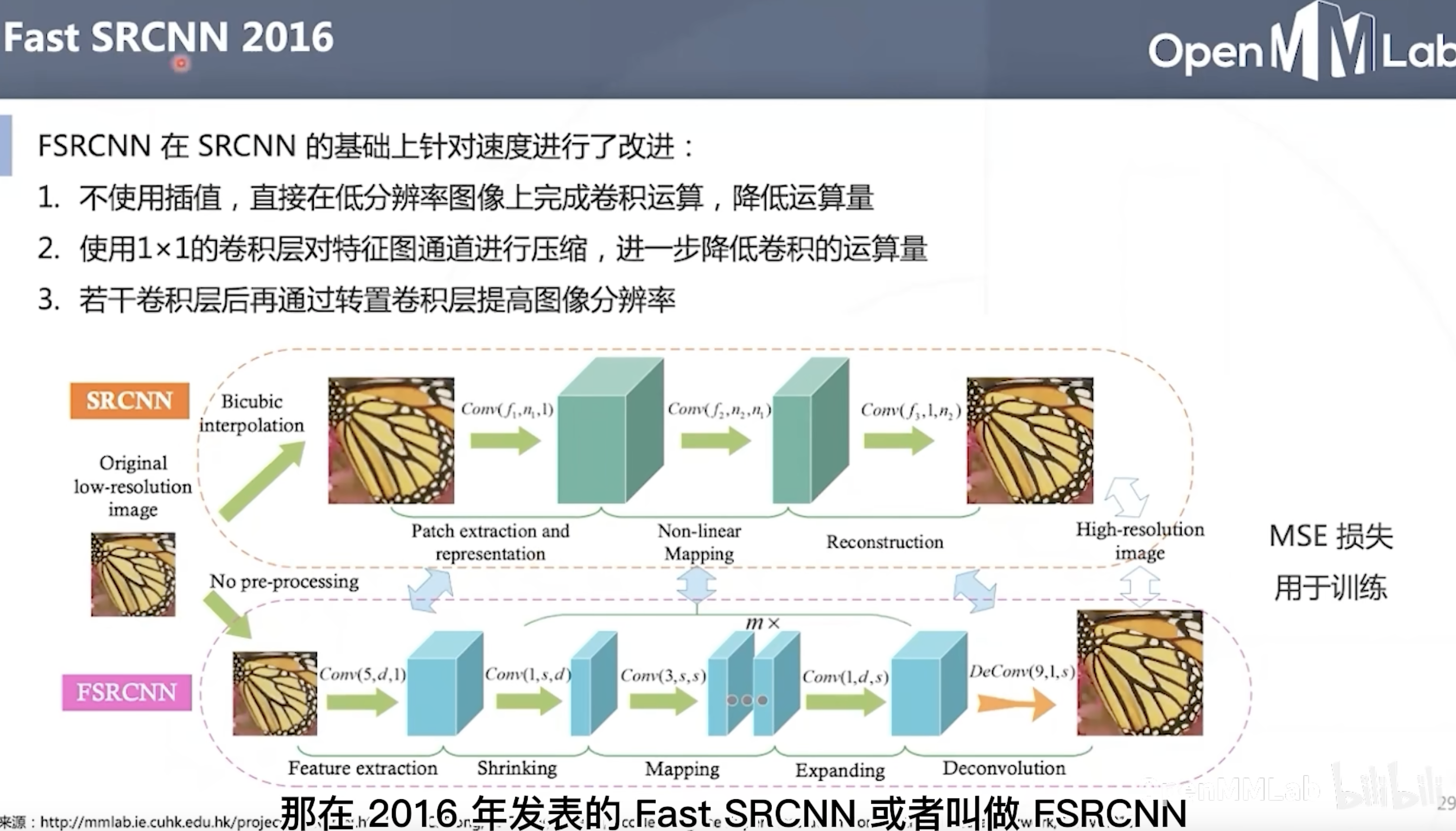 使用卷积神经网络,端到端从低分辨率图像恢复高分辨率图像代表算法 : SRCNN 与 FSRCNN