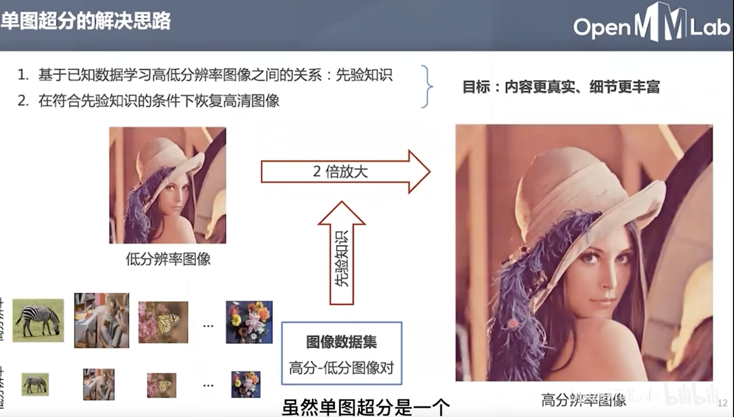 双线性或双立方插值不能恢复图像的高频细节恢复图像的细节、产生真实的内容