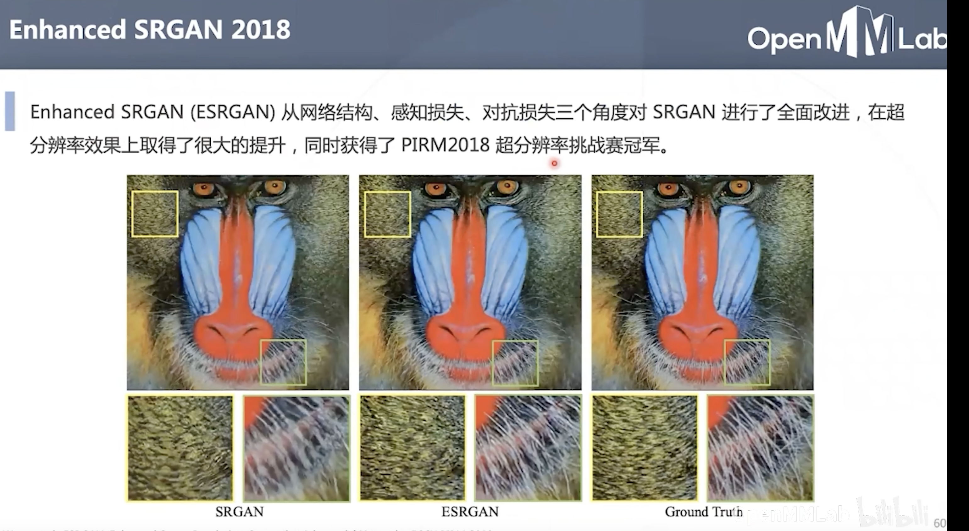 采用生成对抗网络的策略,鼓励产生细节更为真实的高分辨率图像代表算法: SRGAN 与 ESRGAN