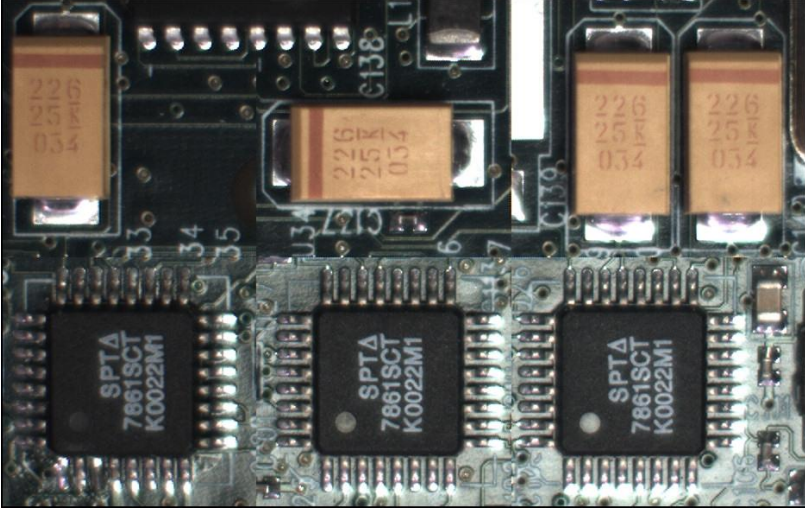 为检测出全部缺陷,需要在多个光源角度下对硬币进行成像,并且由于检测节拍特别短,因此需要在极短的时间内完成三次采集,并且每次对应的相机曝光时间、增益、同步的光源都不同。Nano-5G相机通过Cycling Presets功能完成了参数的预设,每次预设不同的参数并自动触发不同的光源,从而达到了非常高的检测效率。