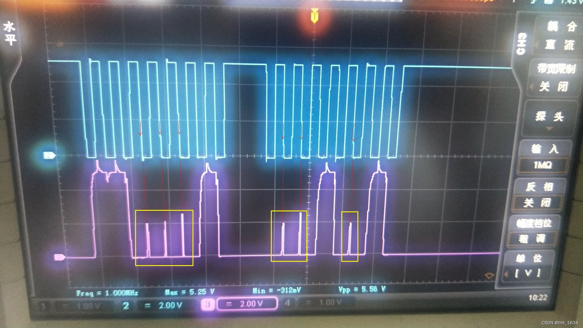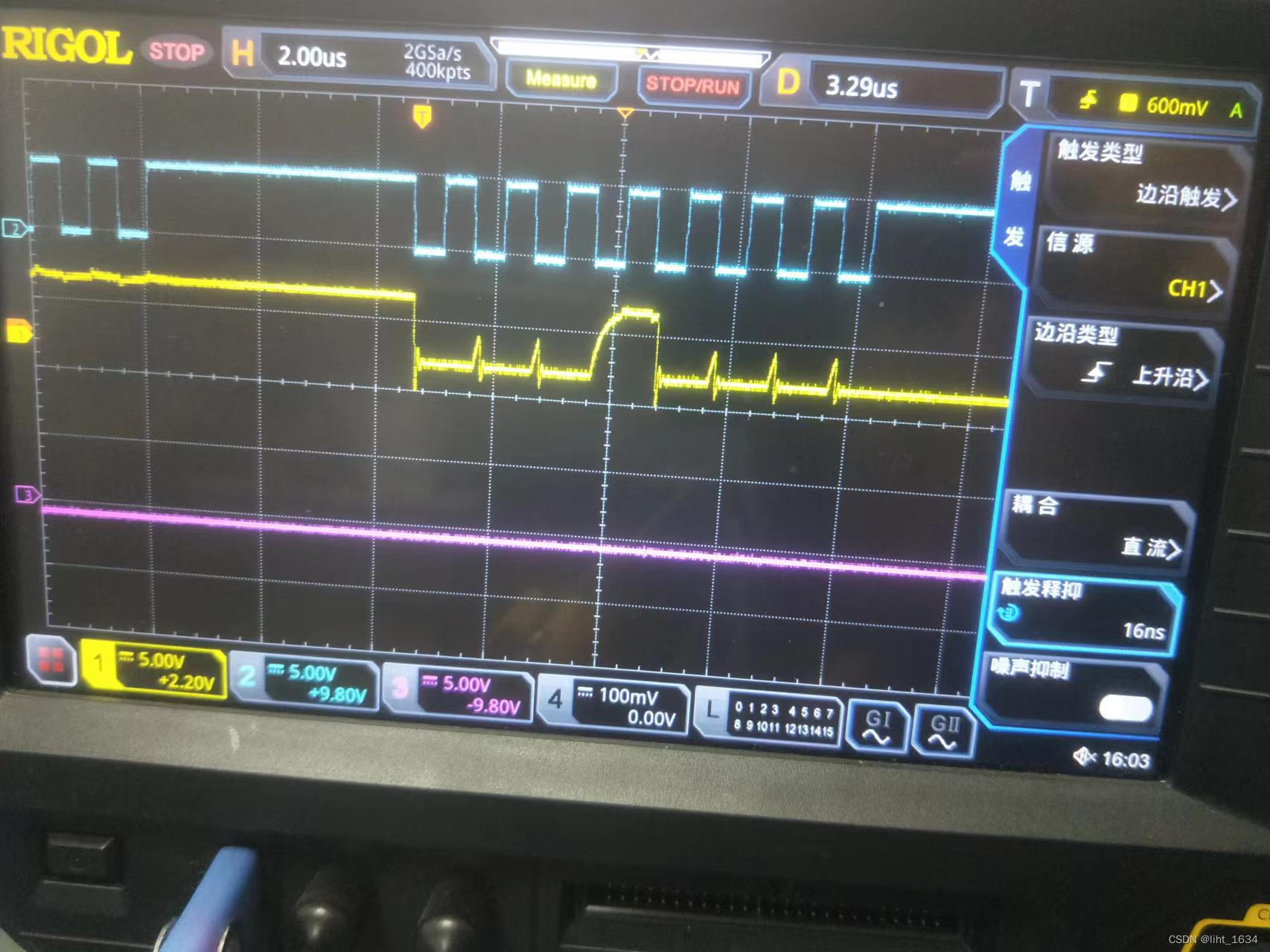 图2.1.8 R15断开后测量DI端波形(黄色)