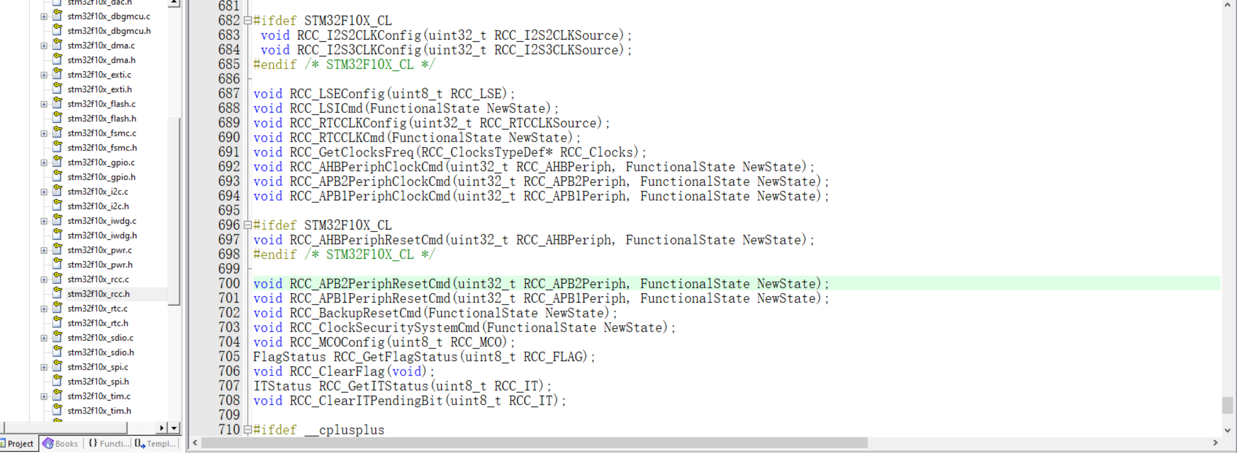 可以打开stm32fl10x_rcc.h中划到最终下面