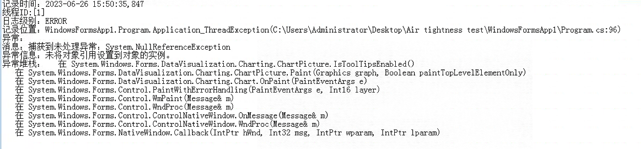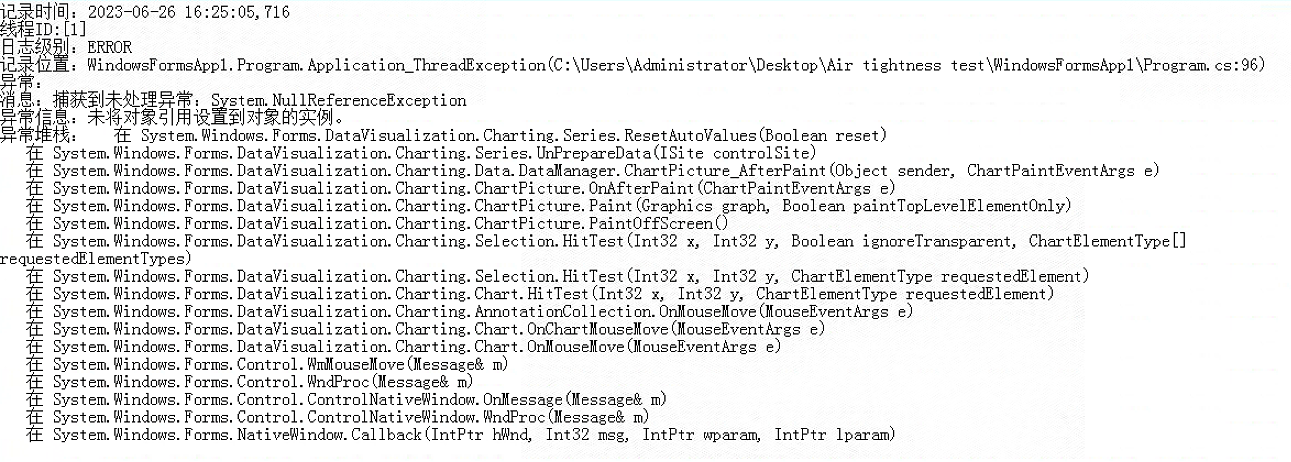 1.数据由定时器读取采集卡的通道进行获取,没秒读取十次,绘制方法seriesleft2.Points.AddXY(TimeX, leftP);TimeX为时间,leftP为读取的气压值。