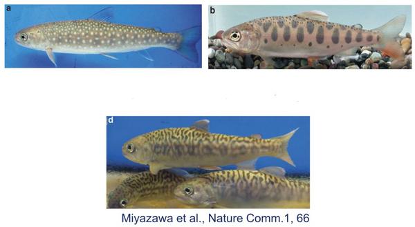 例如,对斑马鱼条纹的实验表明,斑马鱼条纹是由图灵机制产生的,但这种鱼没有分泌扩散到生物体整个系统的化学物质,而是有两种细胞,它们的作用与激活剂和抑制剂的作用相同。最有可能发挥激活/抑制作用的分子只能嵌入细胞膜,而不能分泌。因此,要使这种机制起作用,细胞必须相互接触。