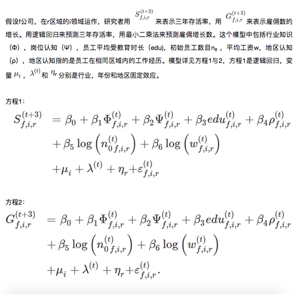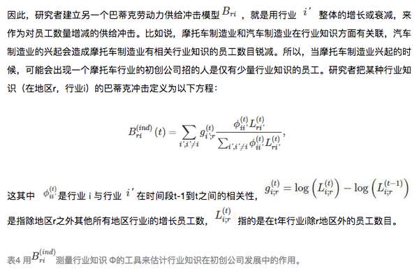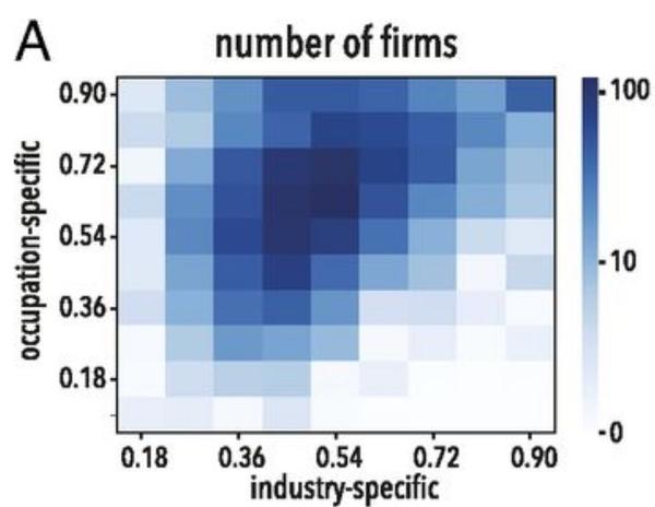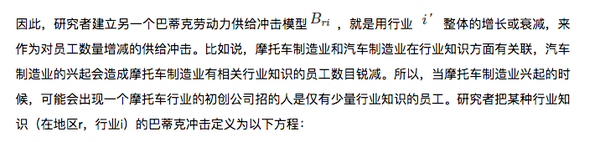 现代社会各个行业之间都有着千丝万缕的关系,所以研究者摒弃了把行业知识和岗位经验作为二分变量的想法,而采用相关性测试。比如,鞋业制造和衬衫制造业是两个领域,但是这两个领域很相似,一个员工从那个鞋业制造业转到衬衫制造业,和一个员工从毫不相关的领域(比如畜牧业)转到衬衫制造业,研究者考虑的是衬衫制造业的行业知识与之前行业知识的相关性。
