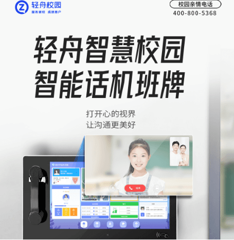 分享关键词:轻舟校园、智慧校园、视频班牌电话、校园视频电话、视频电话