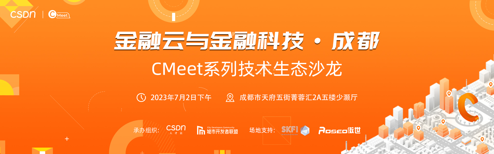 分享在2023年7月2日,CSDN CMeet系列技术生态沙龙成功地在成都举办,以“金融云与金融科技”为主题。这次沙龙邀请了三位分享嘉宾,将近30位成都地区资深金融行业开发者参与。