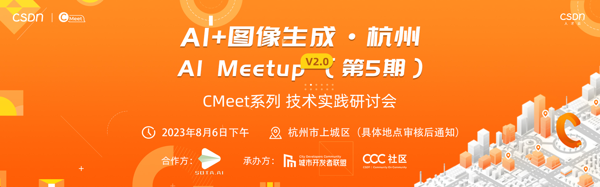 分享随着人工智能技术的快速发展,其在图像生成方面的应用也日益广泛。人工智能可以根据给定的文本、图像或其他信息,自动生成具有高度复杂性和真实感的图像,为各个领域的应用提供了新的可能性。2023年8月6日 CSDN CMeet 技术实践研讨会来到杭州,以“AI+图像生成”为主题,邀请图像生成工具的使用者和图像生成相关技术开发者一同探讨。