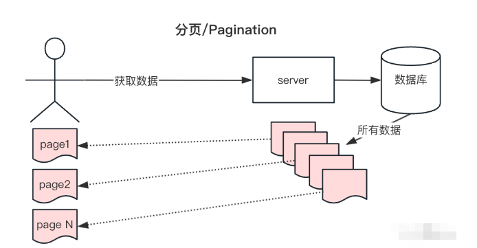 分页(Pagination),是一种常见的数据查询方式,它可以将大量的数据,分成多个页面进行展示,如下图: