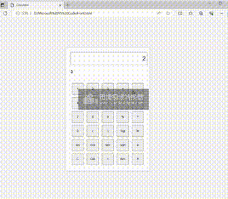 We have employed Visual Studio Code to facilitate the operations of addition, subtraction, multiplication, division, finding residuals, trigonometric functions, and logarithmic functions. Additionally, we have enabled the "ans" button to retrieve previous calculation records. HTML alone, as a language solely designed for web page structure, lacks the capability to handle computational logic and data storage, thus unable to achieve the aforementioned functions. Therefore, JavaScript is utilized to handle front-end logic processing and back-end data storage tasks.