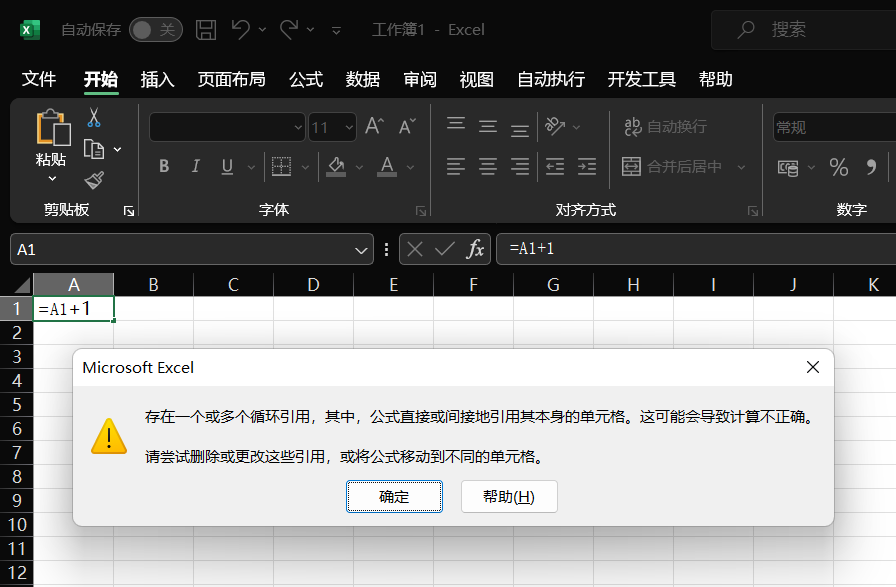 A1 的结果是多少?如下图所示,通常 Excel 会通过提示,禁止循环引用的出现。