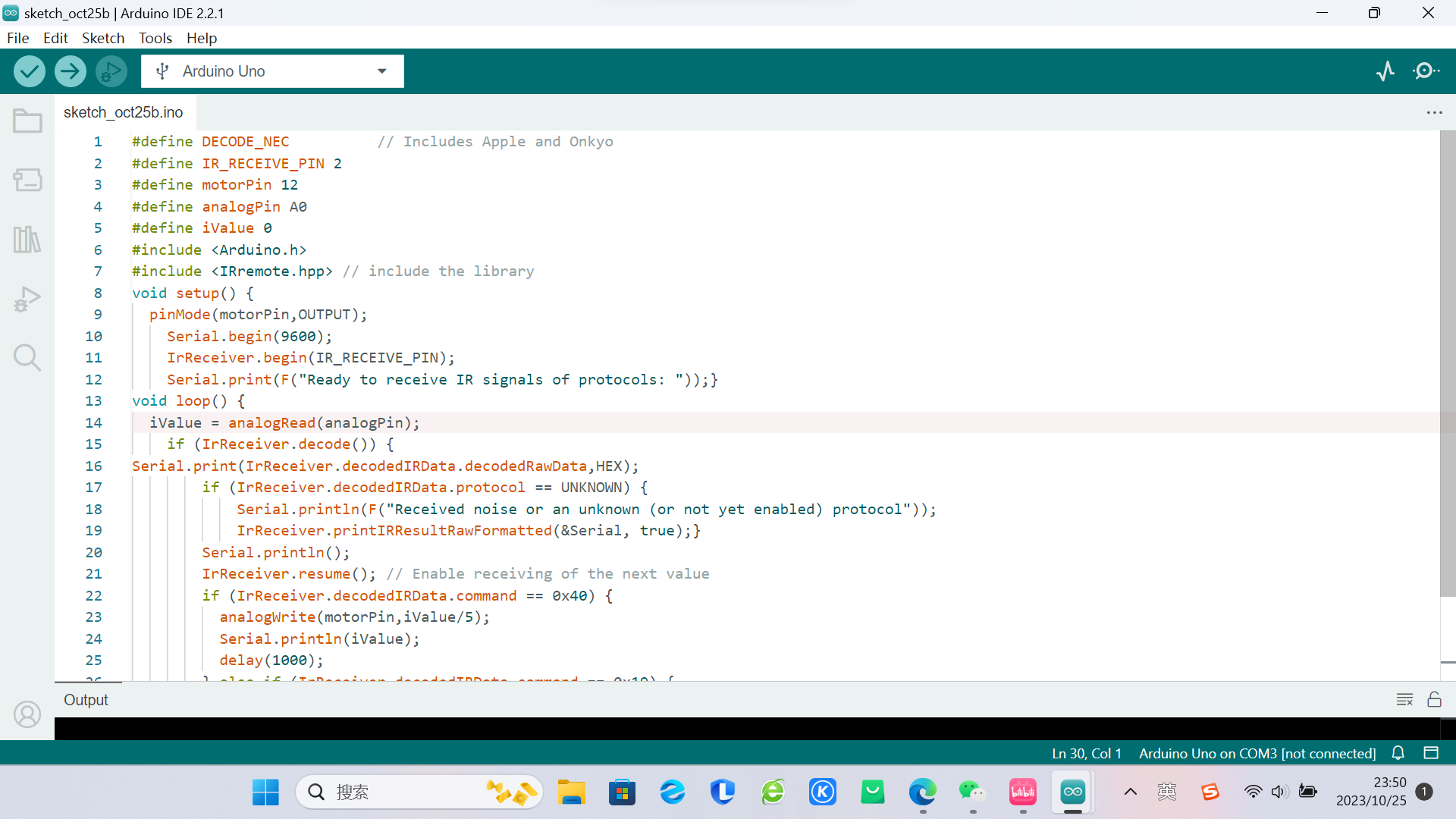 (大佬们好,这是Arduino UNO中设计遥控器控制电机转速的一个实验,代码出现了一处错误,恳求大大们帮忙解决,谢谢。