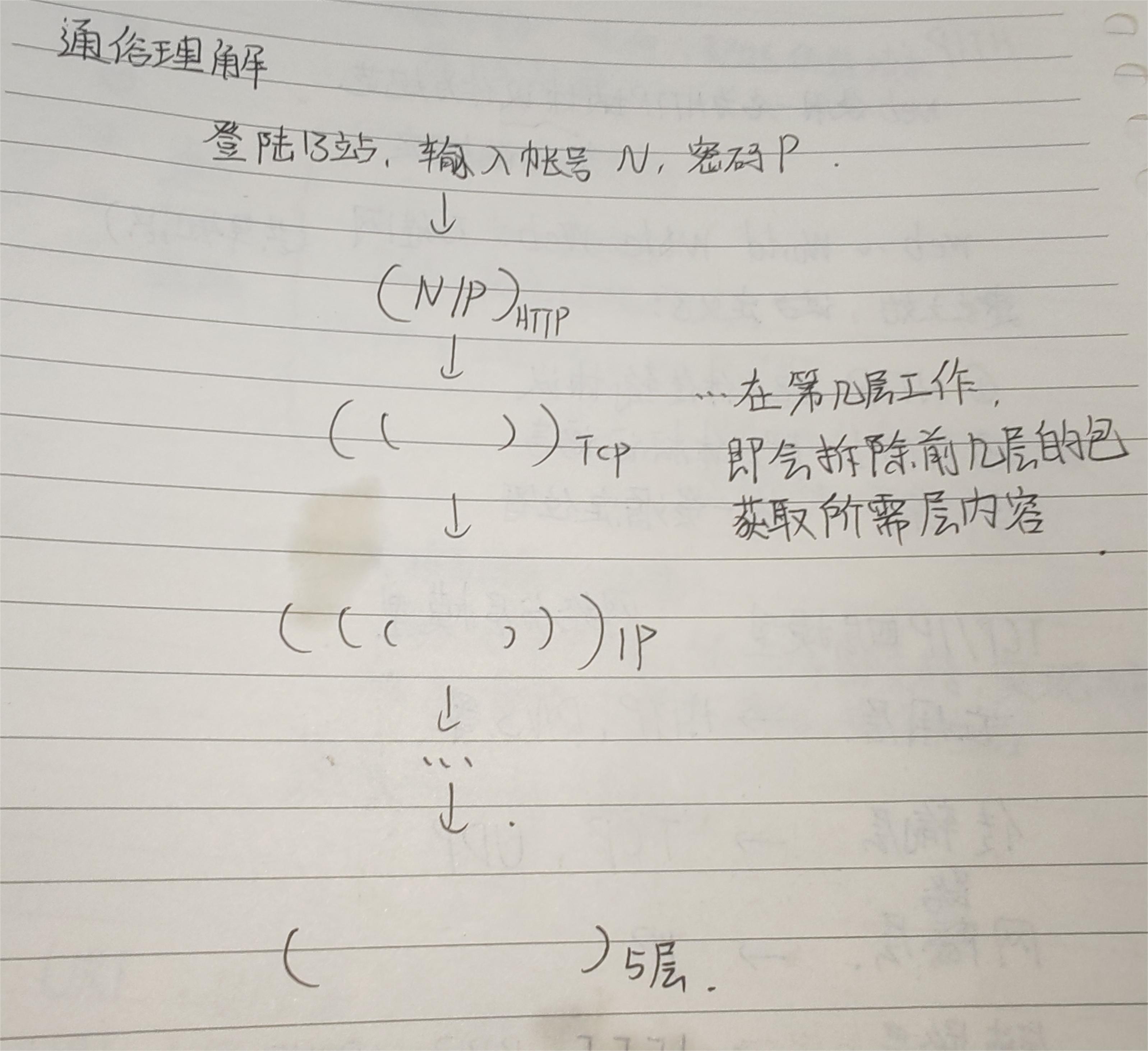 以单向传递为例,在传递过程中,信息会在客户端中层层包裹,等送到服务器后,由服务器一层一层的拆开包裹,并同时获取对应层需要的信息。所以在工作时我们会时常听到有人说“XXX是在第几层工作”